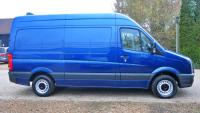 Unique Transporters are delighted to offer this VW Crafter MWB Highroof finished in Metallic Blue.